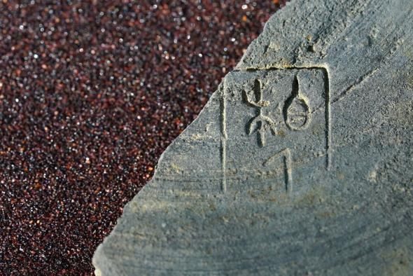 12月16日拍摄的河北柏人城遗址内发掘的刻有“柏人”文字的陶片。(陈雷摄)