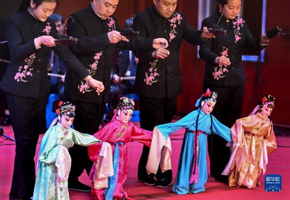 首页 年终报道·2022奔向美好丨传统文化新活力 2022-12-26 08:51:05 分享 2022年3月4日,陕西省合阳县线腔木偶剧团的演员在合阳县文化馆演艺厅内为观众表演提线木偶剧《闹春》。近年来,陕西省合阳县积极出台扶持政策, 在当地开展“非遗进校园”、恢复传统剧目演出、开设免费“周末剧场”等方式,让居民领略传统非遗的魅力,支持合阳提线木偶焕发生机与活力。2022年,在增强文化自信的道路上,在实现乡村振兴的奋斗中,在城市,在乡村,在学校,在工厂,在文化场馆,在田间地头……传统文化正不断散发出它新的活力。新华社记者陶明摄