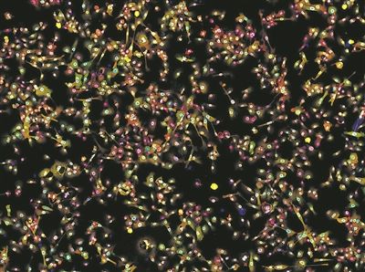 抗细胞生长相关蛋白抗体染色后的肺癌细胞的荧光显微镜图像。图片来源:物理学家组织网