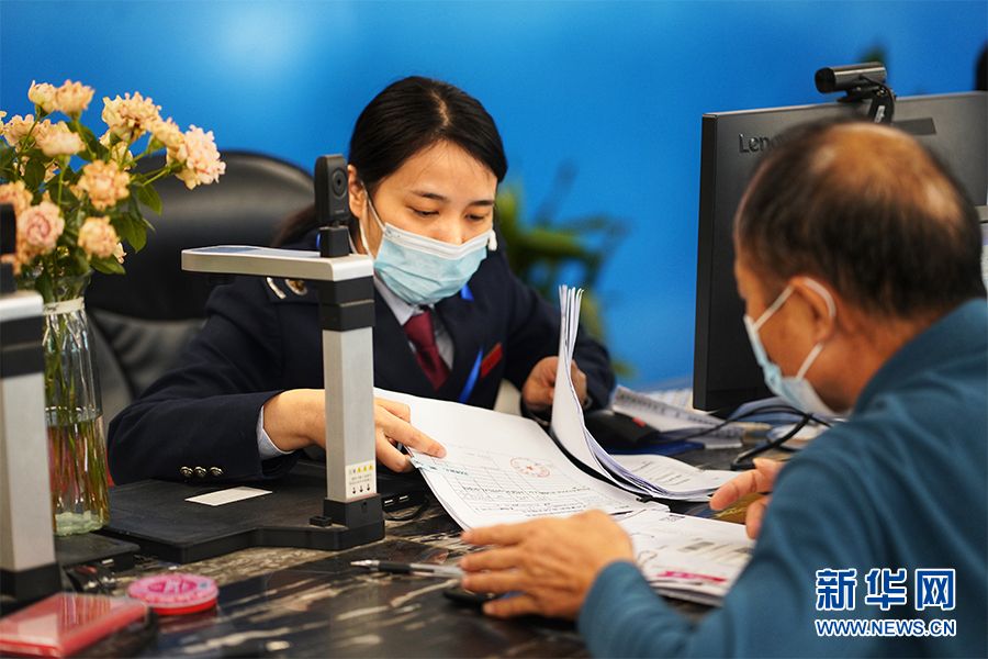 国家税务总局益阳市赫山区税务局办税服务人员审核企业股权变更涉税相关资料,提供窗口办税辅导并进行容缺办理。新华网发 李微摄