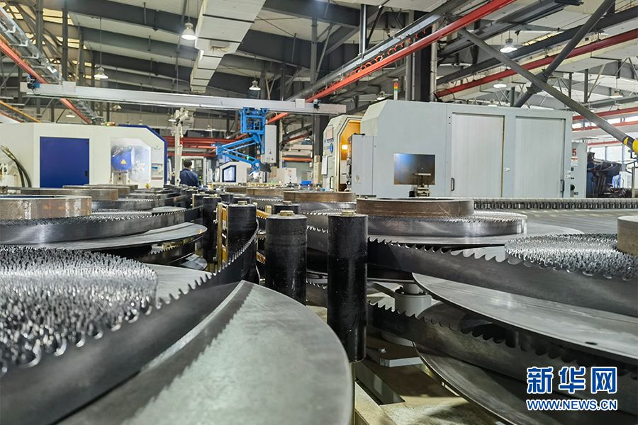 新华网长沙12月29日电(刘扬 刘昱)在湖南泰嘉新材料科技股份有限公司(简称泰嘉股份)的锯带车间,今年新上的6套智能机械手精准配合生产线加工,一条条新材料锯带在机械手中成型并有序下线。