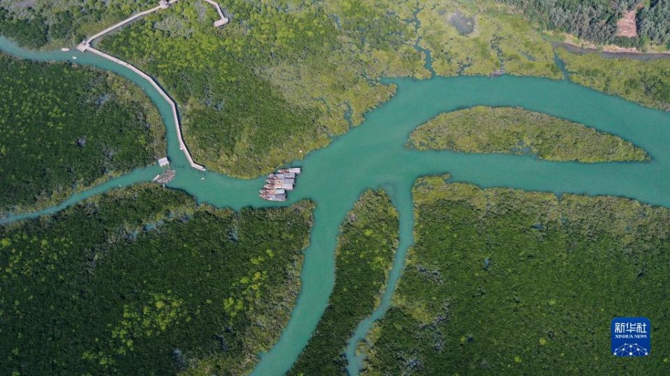 2022年10月22日拍摄的广西山口红树林生态国家级自然保护区景色(无人机照片)。该自然保护区地处广西合浦县,是我国首批海洋类型的国家级自然保护区之一。新华社记者 张爱林 摄