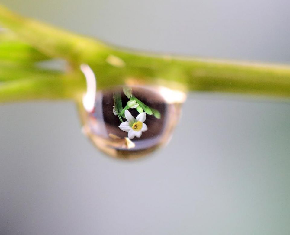 在浙江省诸暨市三都小学,水珠上映着开放的水仙花。新华社发(骆善新摄)