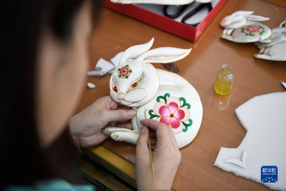 首页 非遗“萌兔”迎新春 2023-01-05 09:19:35 分享 1月4日,在丰宁县非遗布糊画就业工坊,手工艺人在制作兔年主题布糊画。腊月里,河北省丰宁满族自治县布糊画手工艺人以兔为主题,制作憨态可掬、萌味十足的兔年主题布糊画,喜迎新春佳节。布糊画是国家级非物质文化遗 产,以绫罗绸缎等面料为主,在满族传统工艺“补花”的基础上,取绘画、浮雕、堆绣、剪纸、裱糊、布贴画等传统工艺精华结为一体,呈现出浮雕立体的效果。新华社发(王立群 摄)