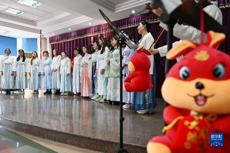 首页 留学生 穿汉服——彩排节目迎春节 2023-01-05 09:28:13 分享 1月4日,在天津大学国际教育学院,留学生进行中文合唱的彩排。当日,天津大学国际教育学院的留学生为参加“校园春晚”加紧排练文艺节目。他们身穿汉服演唱中文歌曲,排练传统古典舞蹈等节目,感受中国传统文化的魅力。新华社记者 李然 摄