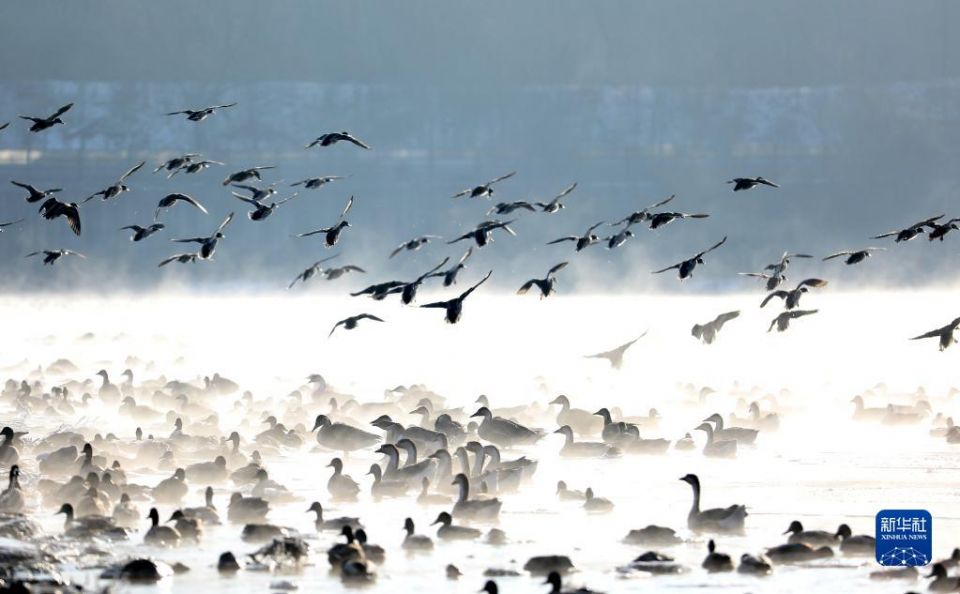 科创 万只迁徙候鸟浑河过冬 2023-01-09 09:09:24 分享 1月4日,候鸟在沈阳浑河休憩、觅食。近日,在辽宁省沈阳市浑河上,万余只鸿雁、赤麻鸭、鸳鸯等候鸟迁徙来此栖息。它们成群结队在河面上嬉戏、休憩,成为冬日里一道美丽的风景线。新华社记者 姚剑锋 摄