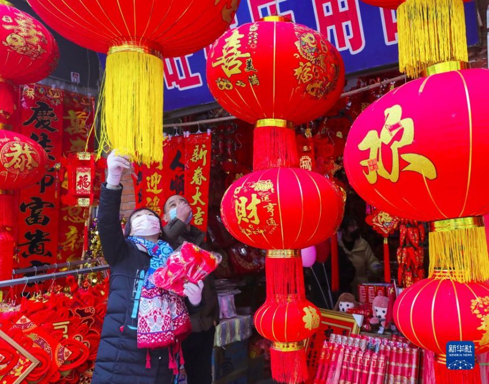1月9日,市民在河南省信阳市光山县一家商店选购春节饰品。