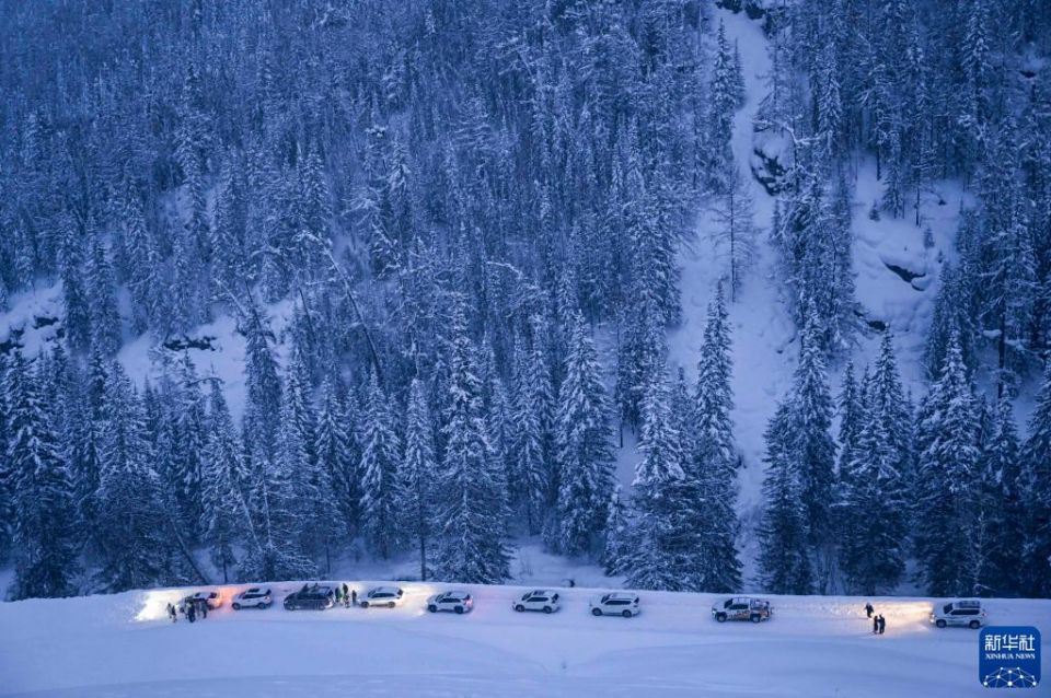 天色渐晚,车队行至距禾木村约45公里处连续急弯路段。忽见山坡上一阵“白烟”,夹着雪粒的冷风灌进车内,车队被涌入路面的积雪切分开,瞬间停滞。