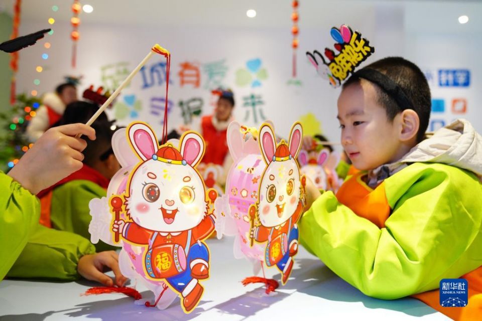 首页 迎新春 2023-01-12 08:18:55 分享 1月10日,在重庆市北碚区未成年人保护中心,孩子们在组装玉兔造型的手工灯笼。当日,重庆市北碚区未成年人保护中心开展迎新春主题活动,当地留守儿童、困境儿童等参加了击鼓传花、玉兔手工灯笼制作、书写福字等活动,喜迎新春佳节的到来。新华社发 (秦廷富 摄)