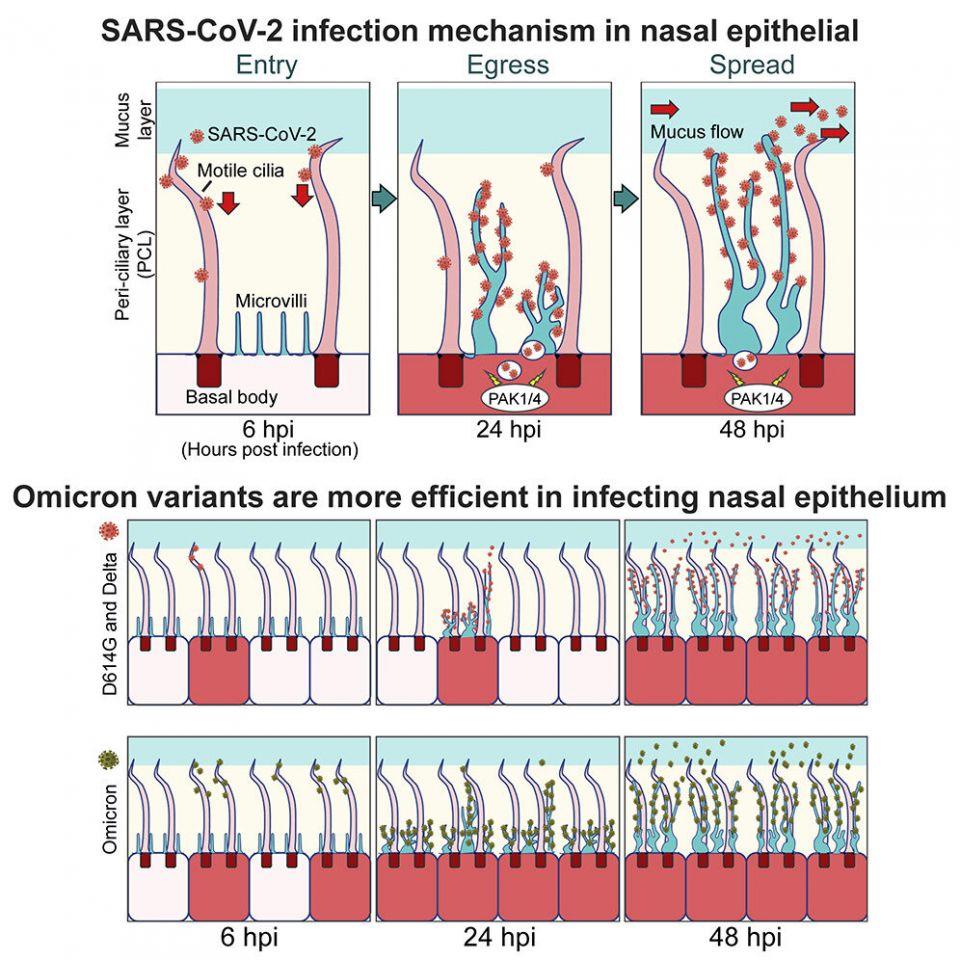 研究发现,降低鼻腔上皮细胞中一种对纤毛形成至关重要的蛋白质的水平,可极大地减缓对新冠病毒的感染,证明人类纤毛鼻腔上皮细胞是新冠病毒在鼻腔上皮组织中的主要进入部位。