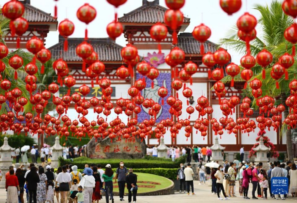 1月12日,游客在海南省三亚南山文化旅游区游览。