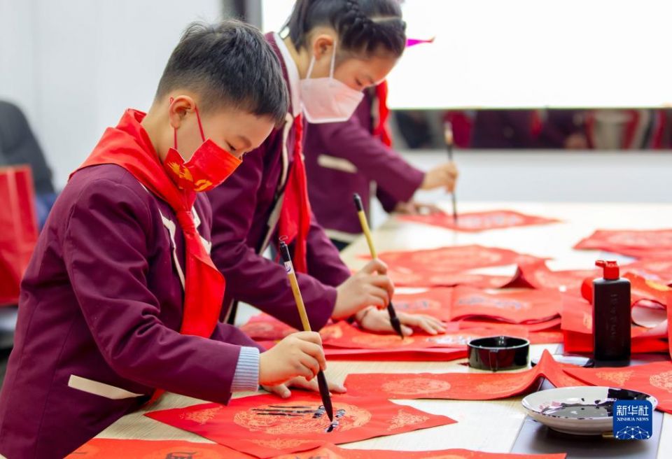 首页 写春联 迎新春 2023-01-16 08:37:37 分享 1月15日,在江苏省海安市海安街道新桥社区,海安市城南实验小学的学生在给社区居民写春联和福字。春节临近,人们书写传统的春联和福字,喜迎新春。新华社发(向中林 摄)