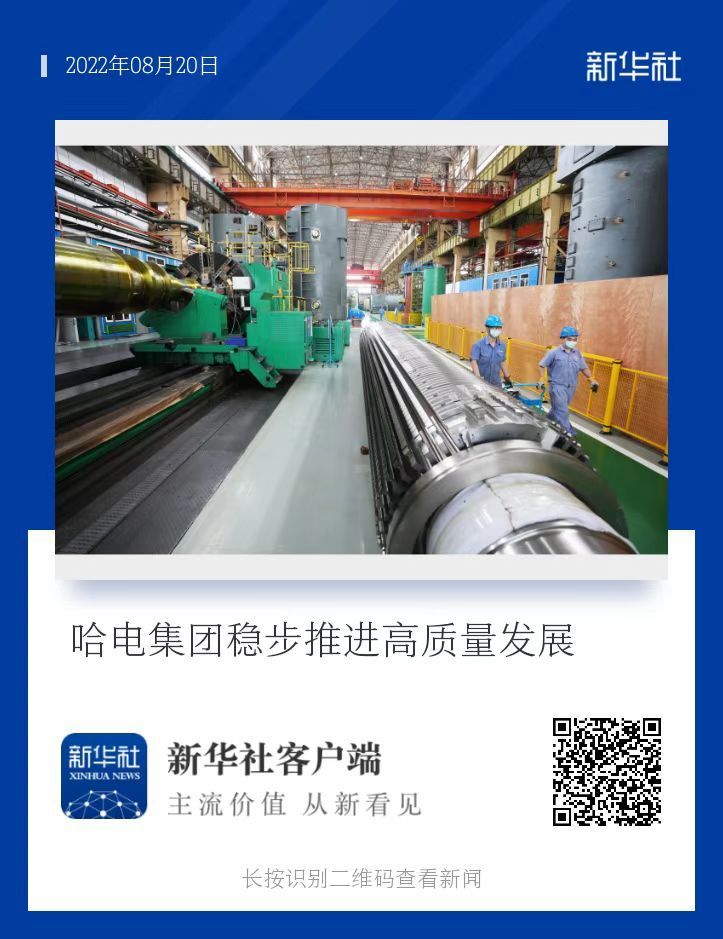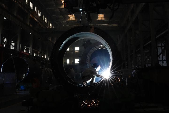 ↑2022年4月13日,在哈电集团哈尔滨电机厂有限责任公司生产车间,工人在进行生产作业。