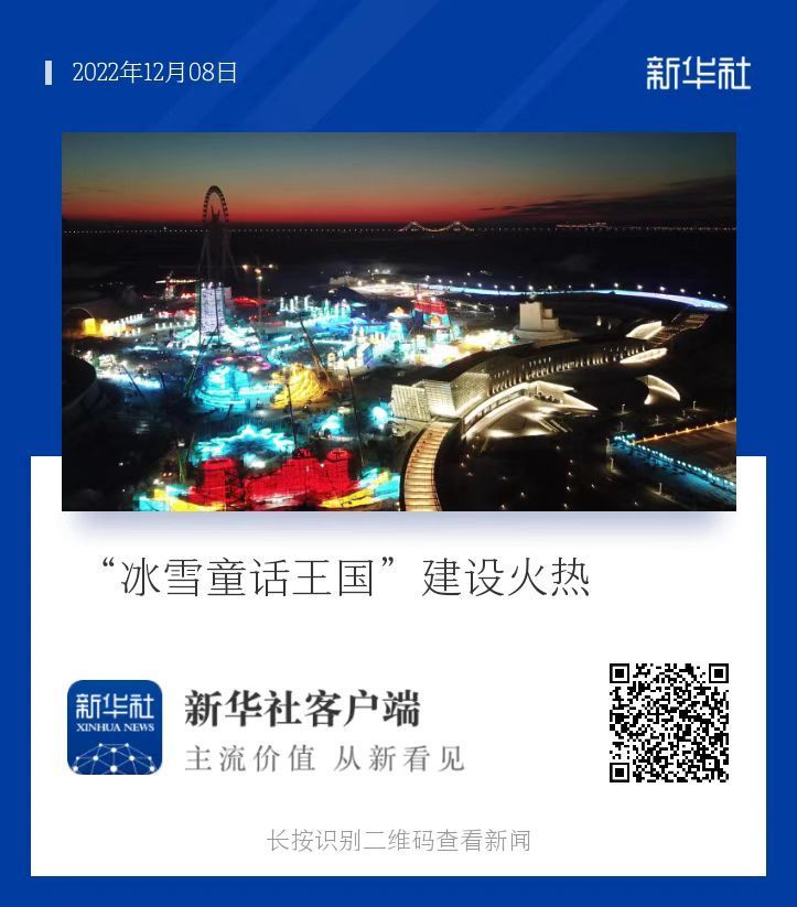 ↑2022年12月7日,施工人员在哈尔滨冰雪大世界园区施工作业。