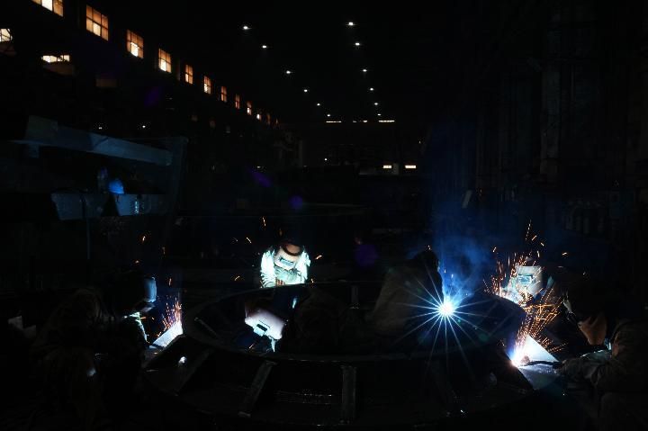 他们用执着的身躯演绎着钢铁“光影秀”