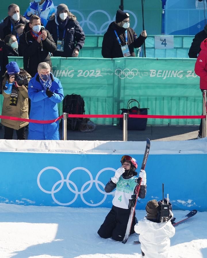 ↑2022年2月8日,中国选手谷爱凌在比赛后。
