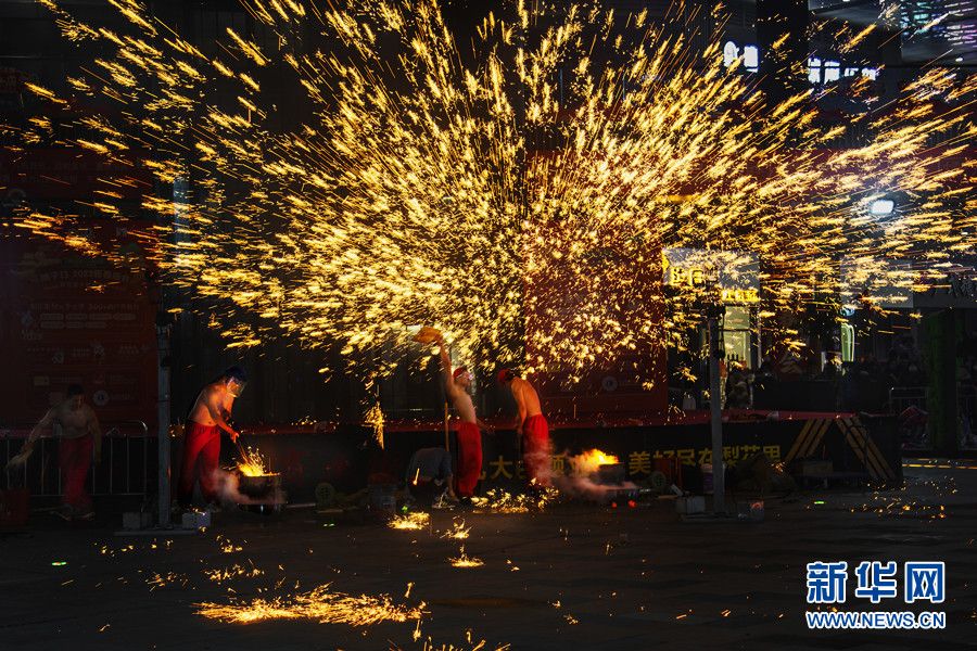首页 安徽砀山:“铁花”绽放迎新春 2023-01-20 09:42:47 分享 近日,安徽省宿州市砀山县举行非遗“打铁花”表演,迎接兔年春节的到来。绚烂的铁花点亮了夜空,现场洋溢着新春佳节的喜庆氛围。新华网发(崔猛 摄)“打铁花”表演“打铁花”表演“打铁花”表演“打铁花”表演“打铁花”表演