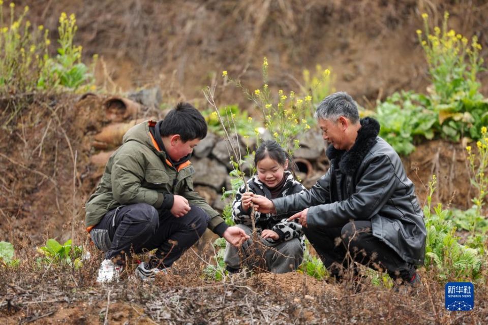 首页 贵州:义务植树为大地添绿 2023-01-29 09:12:05 分享 1月28日,在贵州省毕节市赫章县平山镇对江社区,家长给孩子讲授植树知识。当日是春节长假结束后的第一天,贵州各地开展“为大地添绿”义务植树活动。新华社发(韩贤普 摄)