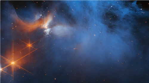 这张由韦布望远镜的近红外相机拍摄的图像描绘了Chamaeleon I分子云的中心区域。图片来源:NASA/欧洲空间局/加拿大航天局