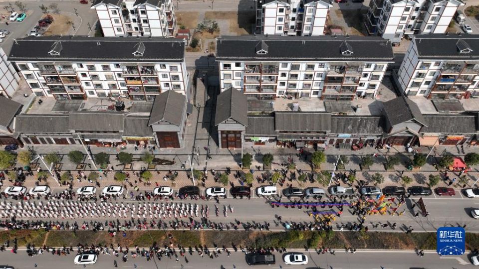 商业 贵州黄平:盛装巡游迎元宵 2023-02-01 09:46:19 分享 1月31日,苗族同胞在贵州省黔东南苗族侗族自治州黄平县谷陇镇盛装巡游(无人机照片)。当日,在贵州省黄平县谷陇镇,26个村(居)的千余名苗族同胞身着银饰盛装,跳板凳舞、吹芦笙、唱苗歌,载歌载舞喜迎元宵佳节。新华社记者 杨楹 摄