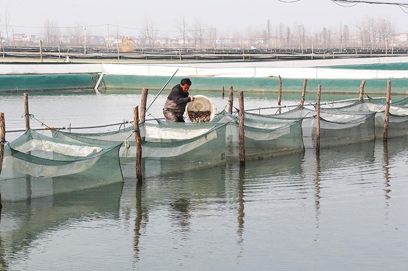 趁着天气晴好,五河县蟹农正在抓紧时间投放蟹苗。李向前摄