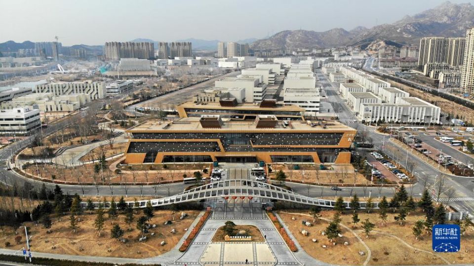 位于青岛西海岸新区的青岛东方影都影视产业园(2月8日摄,无人机照片)。