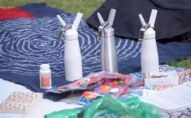 笑气学名一氧化二氮,无色有甜味,常被用于发泡奶油,也被食品行业内称为奶油泡发剂。这些奶油泡发剂一般由一个个金属小罐分装,称为“气弹”。