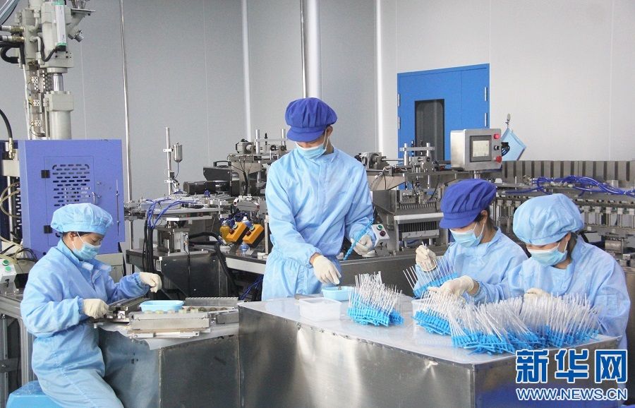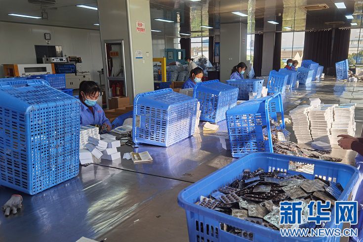图为在永丰县生物医药产业园生产车间内,工人们正在赶制订单。新华网发