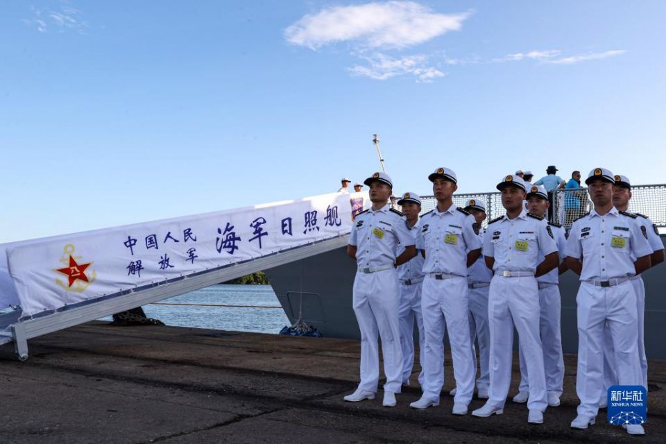 当天16时30分,海军第42批护航编队日照舰缓缓驶入南非理查兹湾港区,编队官兵在甲板上整齐列队,向欢迎人群挥手致意。17时许,日照舰顺利靠泊码头,中国驻德班总领馆代总领事孙安林、南非军方领导、当地华侨华人代表60余人在码头迎接日照舰到来。