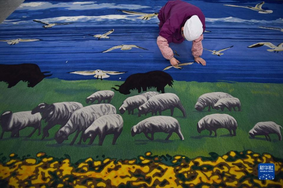首页 青海西宁:藏毯赶制忙 2023-02-22 09:08:47 分享 2月21日,在西宁市圣源地毯集团有限公司生产车间,操作工检查毯面、拔花刺。随着旅游业复苏,藏毯需求量增加。位于青海省西宁市的圣源地毯集团有限公司加紧赶制款式精美的藏毯,确保订单按时交付。据介绍,今年1月份,圣源地毯集团有限公司销售额同比增长27%,目前接到的国内外订单已排到3月底。新华社记者 吴刚 摄