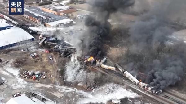 美 国交通部长近日承认美国铁路一年脱轨1000次,平均一天2.7次。而根据美国政府部门此前的统计,数据更惊人,1990年到2021年平均每年脱轨 1705次,平均一天4.7次。本月早些时候,美国一运载有毒化学品的列车在俄亥俄州境内脱轨(上图),引发舆论关注。13日,又有一美国货运列车在得克 萨斯州与一辆货车相撞,货车司机死亡,列车十余节车厢脱轨。