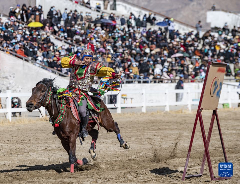 首页 西藏拉萨:马背上迎新年 2023-02-24 08:43:26 分享 2月23日,骑手表演骑马射箭。每年藏历新年初三,在拉萨赛马场举办马术表演已成为当地庆祝新年的传统,深受广大群众喜爱。骑手们英姿飒爽,为观众们带来骑马拾哈达、骑马射箭等精彩表演。新华社记者 孙非 摄