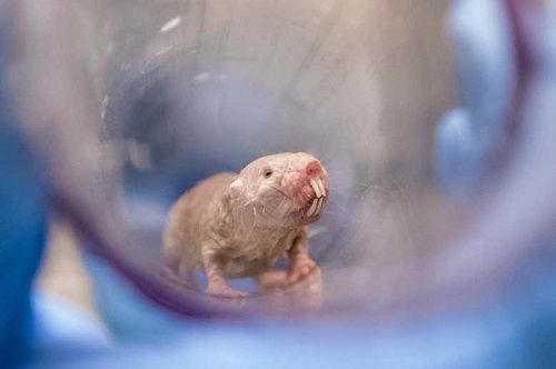实验室里的一只裸鼹鼠。图片来源:英国《新科学家》杂志网站
