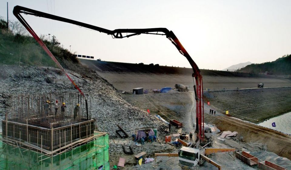 正在进行除险加固中的大型水库——军民水库。新华社记者 刘诗平 摄