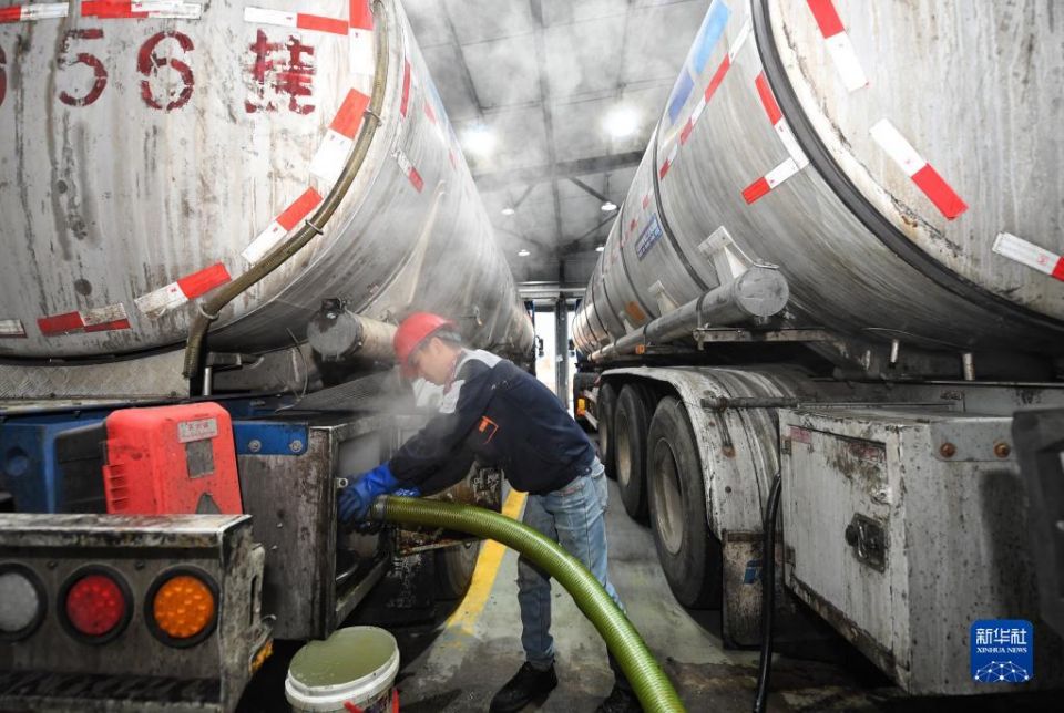 科创 成都餐厨废油用起来 2023-02-28 09:19:40 分享 2月21日,四川一家环保科技有限公司员工将油罐车运来的餐厨废油转送至生产线。据成都市城市管理委员会统计,成都市餐饮服务单位日平均产生废弃油脂数量约400吨,70%到80%的餐厨废油会运往四川相关环保科技公司,生产为工业级混合油、生物柴油等。新华社记者 刘坤 摄