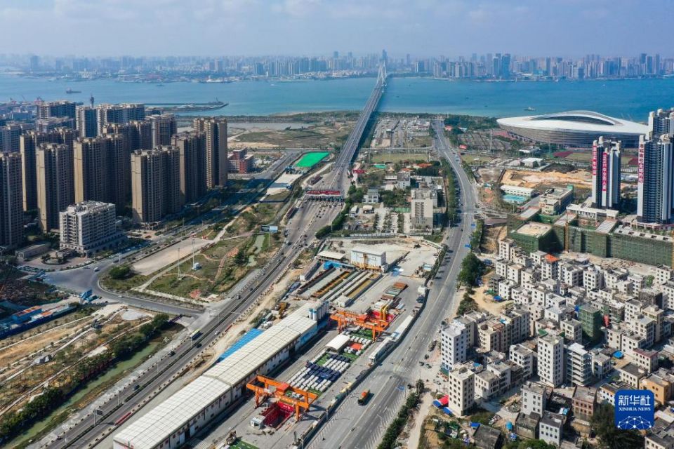 2月28日,广湛铁路湛江湾海底隧道盾构区间“过海穿城”(无人机照片)。
