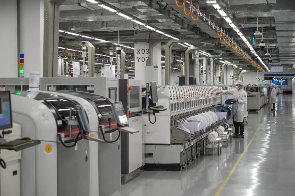 2月22日,荣耀智能制造产业园里的荣耀手机生产线正在生产中。新华社记者刘大伟 摄