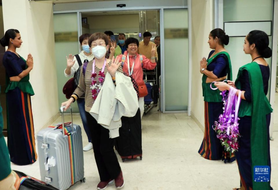 3月1日,中国游客抵达斯里兰卡的班达拉奈克国际机场。新华社发(阿吉特·佩雷拉摄)