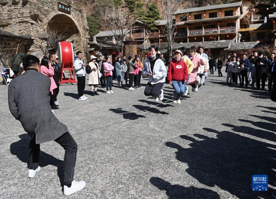 游客在柞水县终南山寨景区娱乐(3月4日摄)。