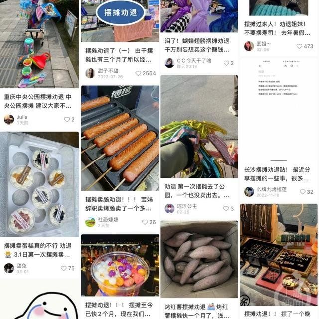 更 多亲身实践摆摊的年轻人也在分享着各种劝退理由,“最开始卖灯笼时街上只有我一家,第三天就出现了大量竞争对手,生意眼见就不行了”“生意好、客流量大的 地方基本上都要按月或者按年交摊位费,免费的地方既不稳定人流量也少,很多店门口也不让摆”“应对顾客的讨价还价真的是一件很心累的事情”“每天要站好几 个钟头,雨雪天气也不想出去摆摊,很容易摆烂”“摆摊真的不是往那里一站就会有生意,根本无人问津”“摆了摊才知道有些利润真的没有想象中那么高”……