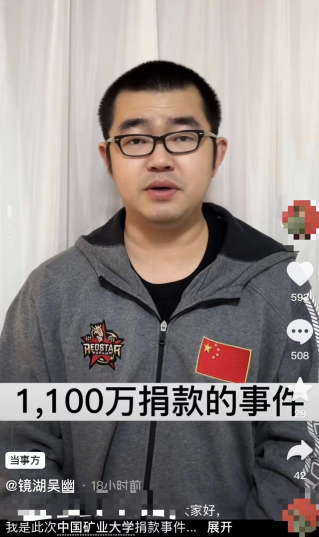 吴幽在社交媒体上发声称,近期他向中国矿业大学捐款1100万元的事件给大家造成困惑,也占用了很多公共资源。接下来,他会对此事件做出详细的说明和回应。