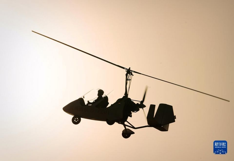 3月14日,杨世谊在洛阳市宜阳县的飞行营地内驾驶旋翼机进行性能测试。