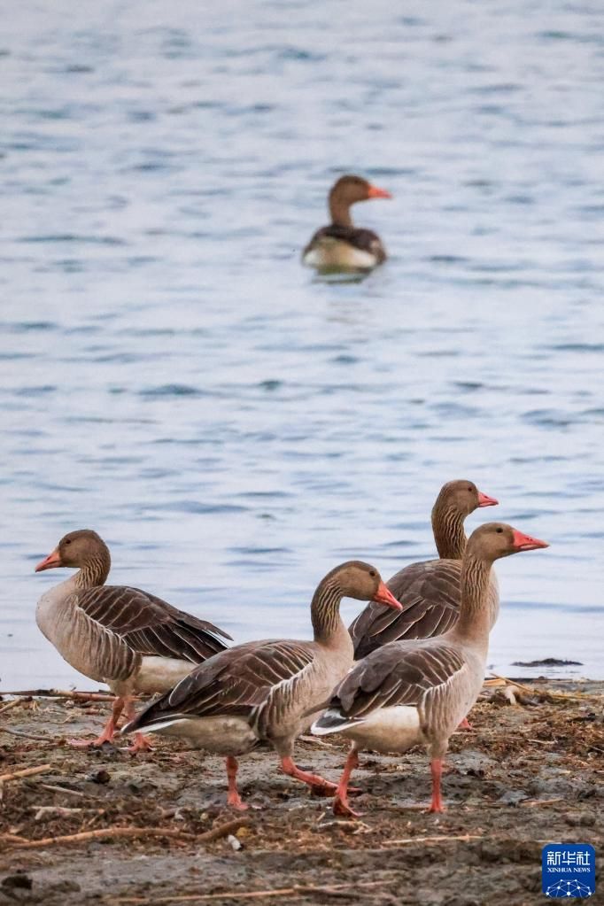 首页 新疆博斯腾湖:冰雪消融 候鸟春归 2023-03-20 08:11:15 分享 灰雁在新疆博斯腾湖觅食(3月17日摄)。随着天气转暖,冰雪消融的新疆博斯腾湖迎来大批候鸟回归。博斯腾湖位于新疆巴音郭楞蒙古自治州境内,水域面积1646平方公里,是我国最大的内陆淡水湖,也是候鸟迁徙路上的重要栖息地和中转站。近年来,随着当地生态环境的持续改善和民众保护野生动物意识的不断提高,候鸟数量连年增加。新华社记者 丁磊 摄
