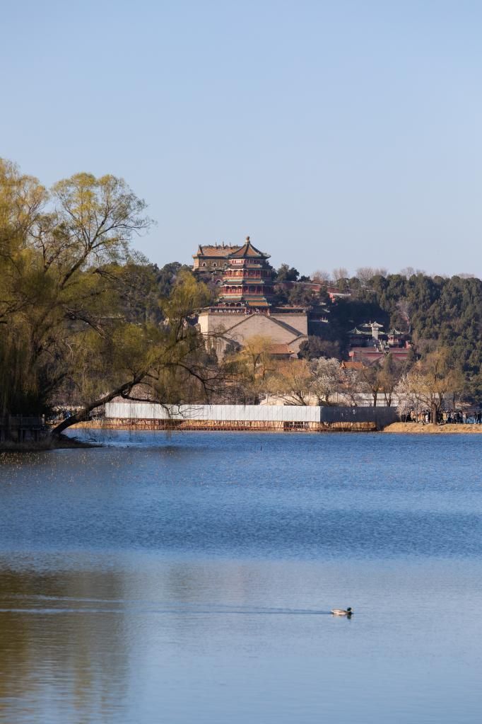 3月18日,北京颐和园春意盎然,景色优美。蓝天白云,春风和煦,春日花朵竞相盛开,争奇斗艳。