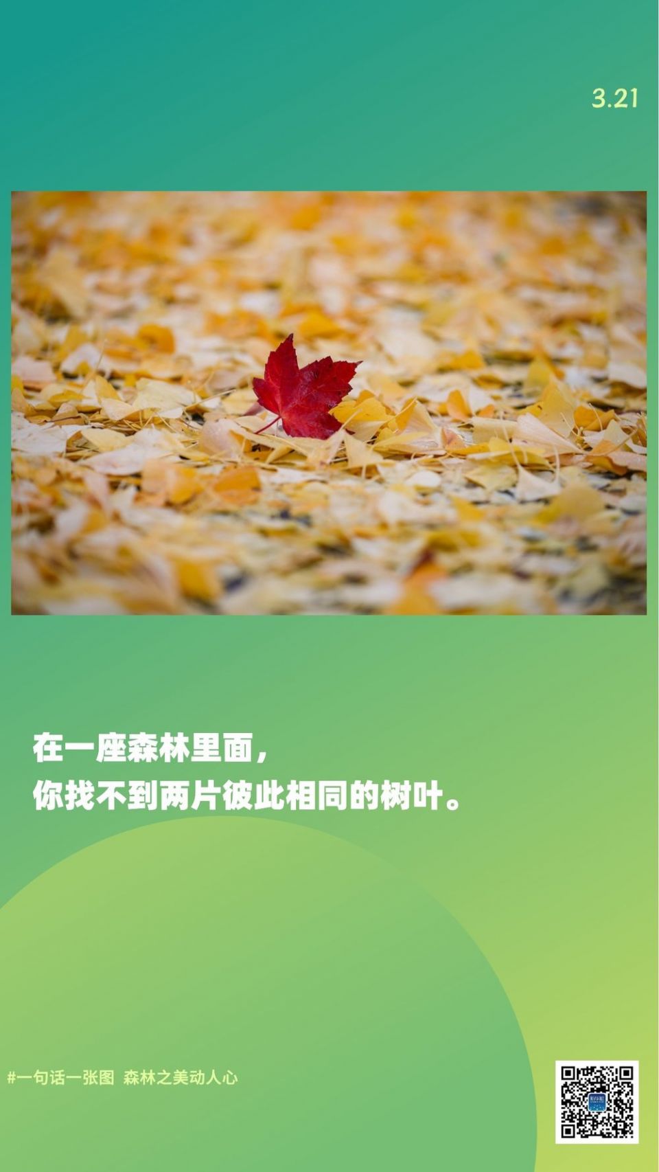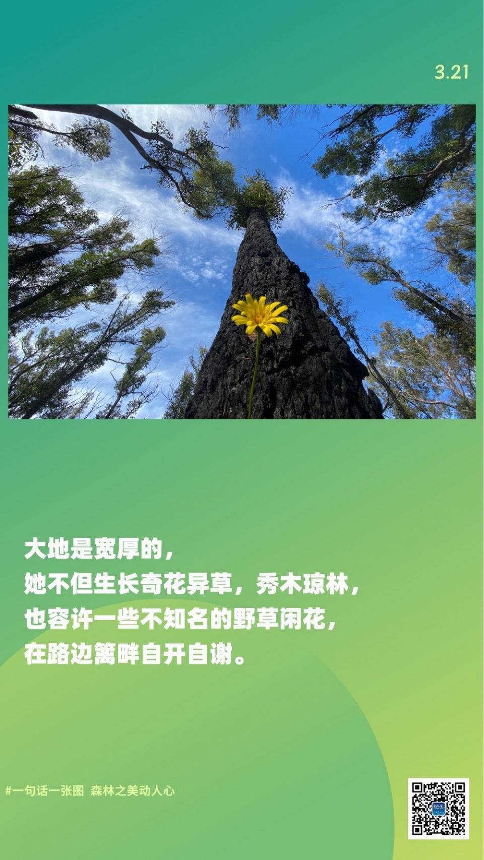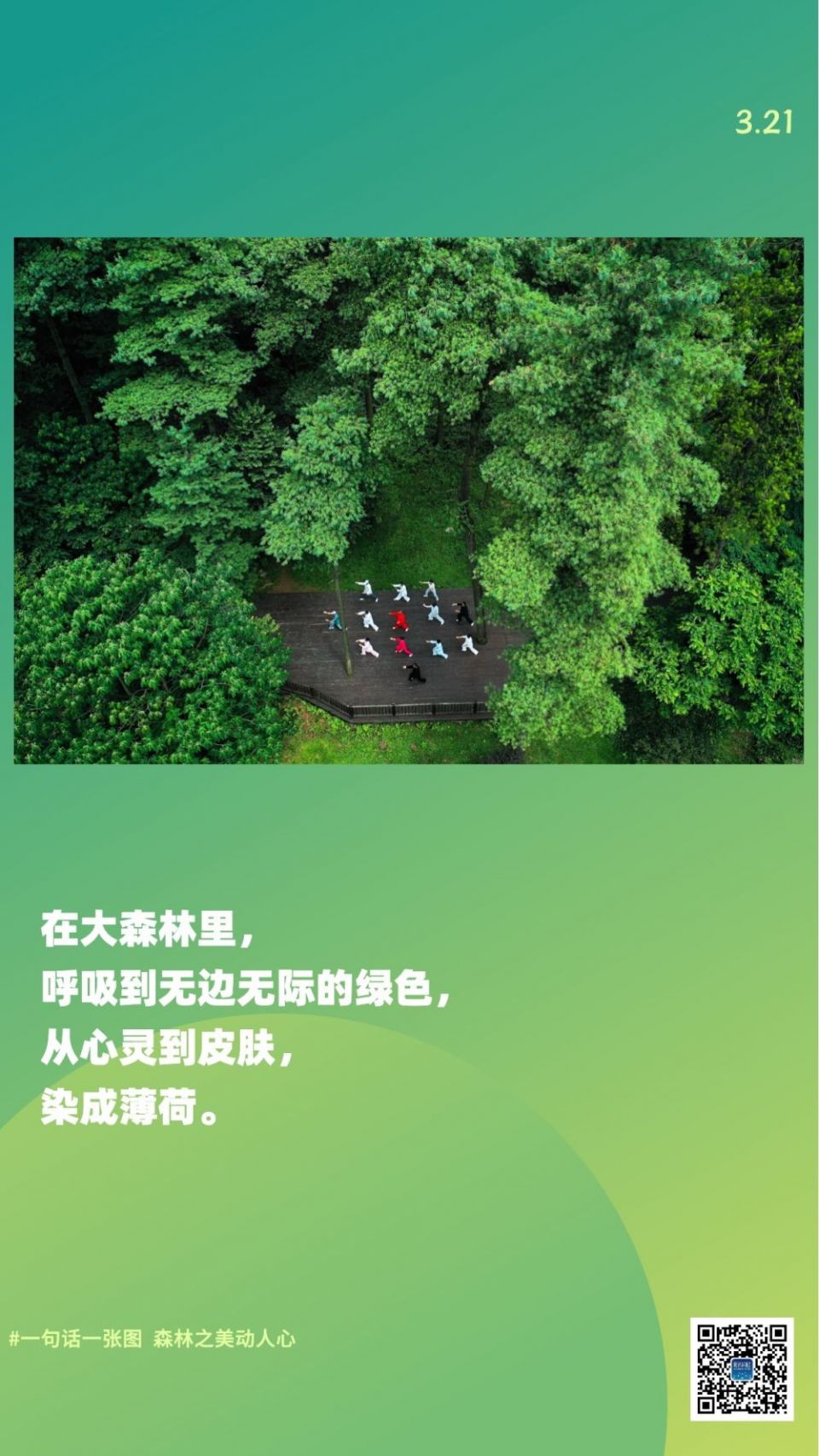 科创 一句话一张图,森林之美动人心 2023-03-22 09:17:12 分享 森林对人类的健康大有裨益通过清洁水源、净化空气、捕获碳森林能够应对气候变化提供食物和救生药物并改善我们的福祉希望下面这9张图9句话助你读懂森林、读懂自己编辑:王海燕、尹栋逊、吕帅、李梦馨摄影:张铖、杨世尧、白雪飞、刘宪国、龚兵、宋文、费茂华、刘满仓、杨文斌