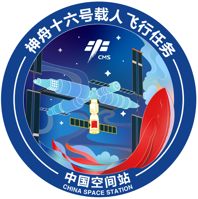 该方案整 体设计融入了中国神话传说中的神兽鲲,鲲飞得极高、极远、极稳,有力争上游的寓意,同时也有吉祥的寓意,是对中国空间站最美好的祝福;任务标整体采用红蓝 配色,主体图案为鲲身披祥云向上游动环抱空间站,空间站以昂扬的姿态屹立于宇宙星河之中;金黄色的神舟十六号载人飞船对接于天和核心舱径向端口。