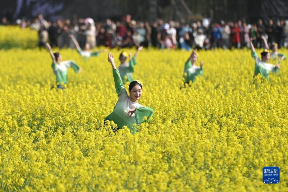 首页 浙江桐庐:油菜花田中的沉浸式演出 2023-03-27 09:23:52 分享 3月26日,演员在梅蓉村的油菜花田里表演。当日,在2023中国·桐庐山水艺术季活动期间,一场名为“在富春金黄的日子里”的沉浸式演出在浙江省桐庐县桐君街道梅蓉村上演,吸引游客驻足欣赏。新华社记者 黄宗治 摄