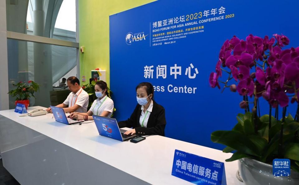 首页 博鳌亚洲论坛2023年年会准备就绪 2023-03-28 08:01:43 分享 3月27日,工作人员在博鳌亚洲论坛新闻中心工作。博鳌亚洲论坛2023年年会将于3月28日至31日在海南博鳌举行,年会主题为“不确定的世界:团结合作迎挑战,开放包容促发展”。新华社记者 杨冠宇 摄
