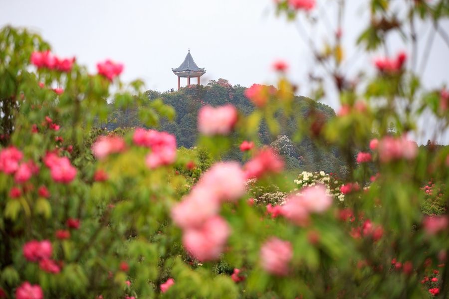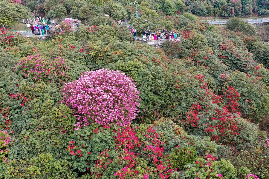 近日,随着气温逐渐升高,位于贵州省毕节市百里杜鹃管理区的天然野生杜鹃花次第盛开,逐渐进入盛花期。据了解,百里杜鹃林带绵延百里,故称“百里杜鹃”。新华社记者 刘续 摄