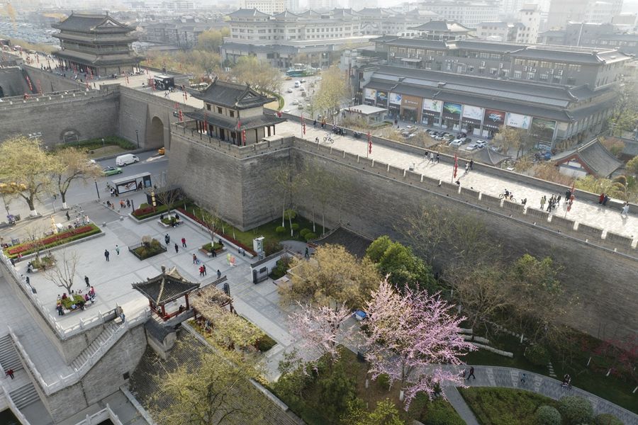 这是西安明城墙景色(3月25日摄,无人机照片)。新华社记者 邵瑞 摄